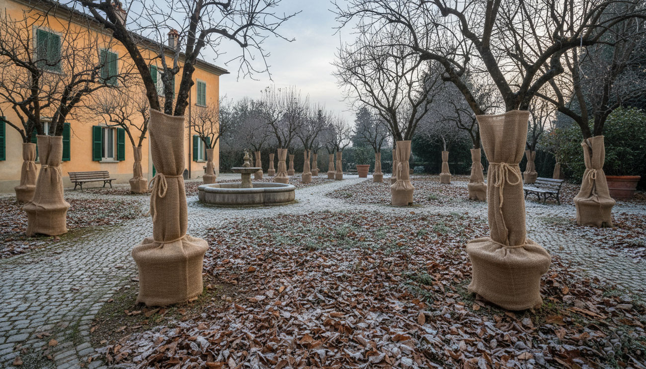 Alcune piante hanno bisogno di attenzioni speciali con il freddo veneto. Noi sappiamo riconoscerle e proteggerle: tessuti non tessuto della giusta grammatura, pacciamature per le radici, trasferimenti in posizioni riparate. Ogni pianta ha le sue esigenze e noi conosciamo quelle del nostro territorio. Il gelo non fa sconti, noi non lasciamo niente al caso.